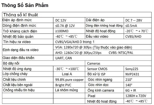 - Khả năng chống bụi, chống nước đạt tiêu chuẩn, 4 camera góc nhìn 180 độ HD, chất lượng hình ảnh của camera có thể đạt đc chất lượng hình ảnh cao nhất AHD khi lắp trên DVD android có hỗ trợ AHD cho camera.