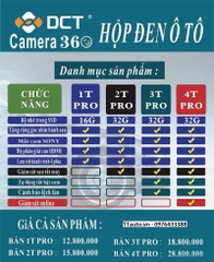 Giá camera 360 DCT T1 thấp nhất trong hệ thống các sản phẩm Camera DCT, được bán với giá 12.800.000 đồng. Mặc dù là phiên bản cơ bản nhất nhưng lại đem đến những tính năng vượt trội cùng mức giá cạnh tranh, DCT T1 hiện đang là sản phẩm đồng hành đáng tin cậy và được rất nhiều bác chủ xe lựa chọn.
