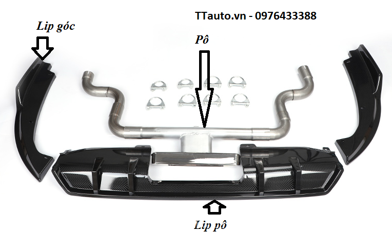 Một bộ đầy đủ gồm Pô, lip pô và lip góc