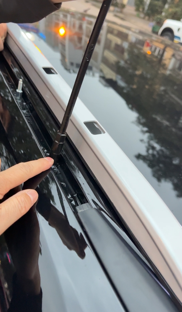 Lắp đặt : Lắp đặt vào vị trí chờ sẵn của nhà sản xuất. Dưới thanh nẹp màu đen trên nóc xe đã có sẵn chân ốc chờ, chỉ cần tháo ra và lắp vào.