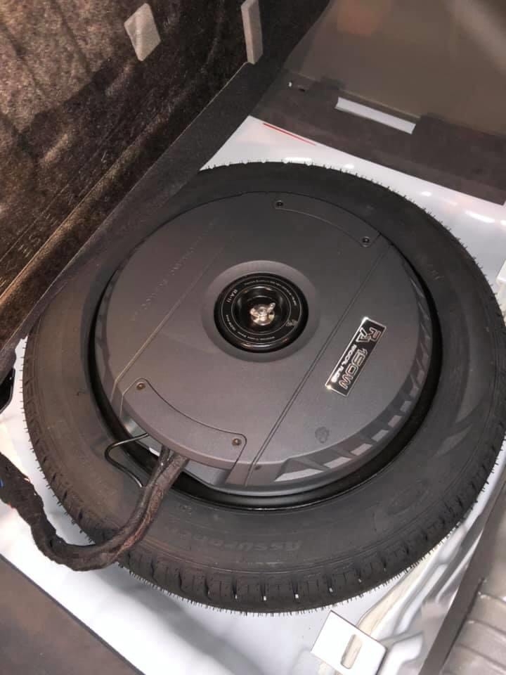 Lựa trọn dòng sub để hốc lốp dự phòng là lựa trọn dòng sub trầm siêu đỉnh, bởi vì hốc lốp xe dự phòng rộng. Hàng đã thiết kế riêng dòng loa sub phù hợp, vừa khít để lắm vào gốc lốp xe.